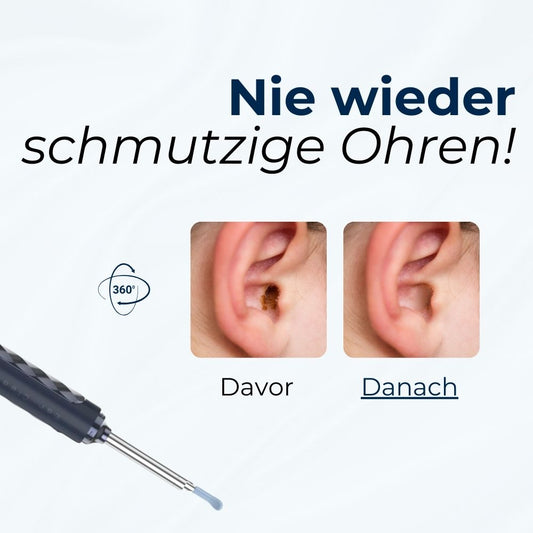 Wattestäbchen schieben Schmutz oft nur tiefer ins Ohr – unser innovativer Ohrenreiniger entfernt ihn gründlich und sicher. Dank der integrierten Kamera siehst du genau, was du tust. Perfekt für Erwachsene und Kinder!